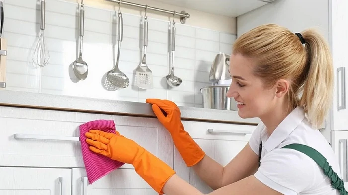Η κουζίνα χρειάζεται ιδιαίτερη προσοχή επειδή οι επιφάνειες έρχονται συνεχώς σε επαφή με τους ατμούς κατά το μαγείρεμα. Ακόμη και ο πιο σύγχρονος απορροφητήρας δεν μπορεί να εμποδίσει εντελώς την καθίζηση μικροσκοπικών σταγονιδίων λαδιού. Με την πάροδο του χρόνου, μετατρέπονται σε ένα παχύ, κολλώδες στρώμα που αλλοιώνει την εμφάνιση των επίπλων και συγκεντρώνει σκόνη.